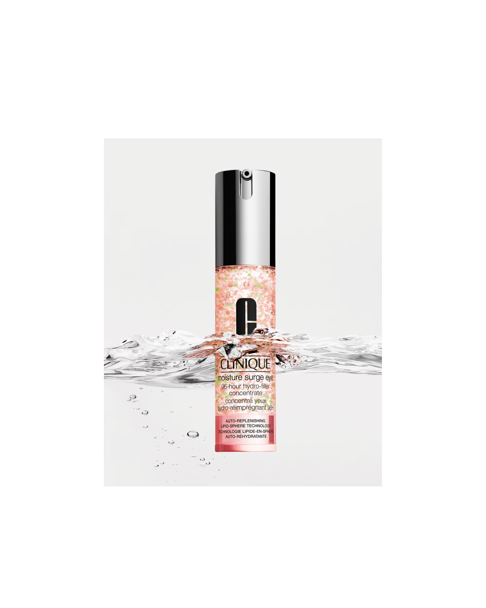 Clinique Moisture Surge Eye 96-Hour Hydro-Filler Concentrate is a refreshing, lightweight eye gel that provides intense hydration and helps to instantly smooth and firm the delicate skin around your eyes. Powered by a unique blend of aloe vera and humectants, this gel-cream formula delivers moisture for up to 96 hours, leaving the under-eye area plumped and revitalized. It visibly reduces the appearance of puffiness and fine lines, leaving the skin feeling refreshed and awake. Perfect for those with dry or tired eyes, this concentrate works to restore the skin's moisture barrier while providing long-lasting comfort and hydration. Suitable for all skin types, including sensitive skin, it’s allergy-tested and fragrance-free, making it a gentle addition to your skincare routine.