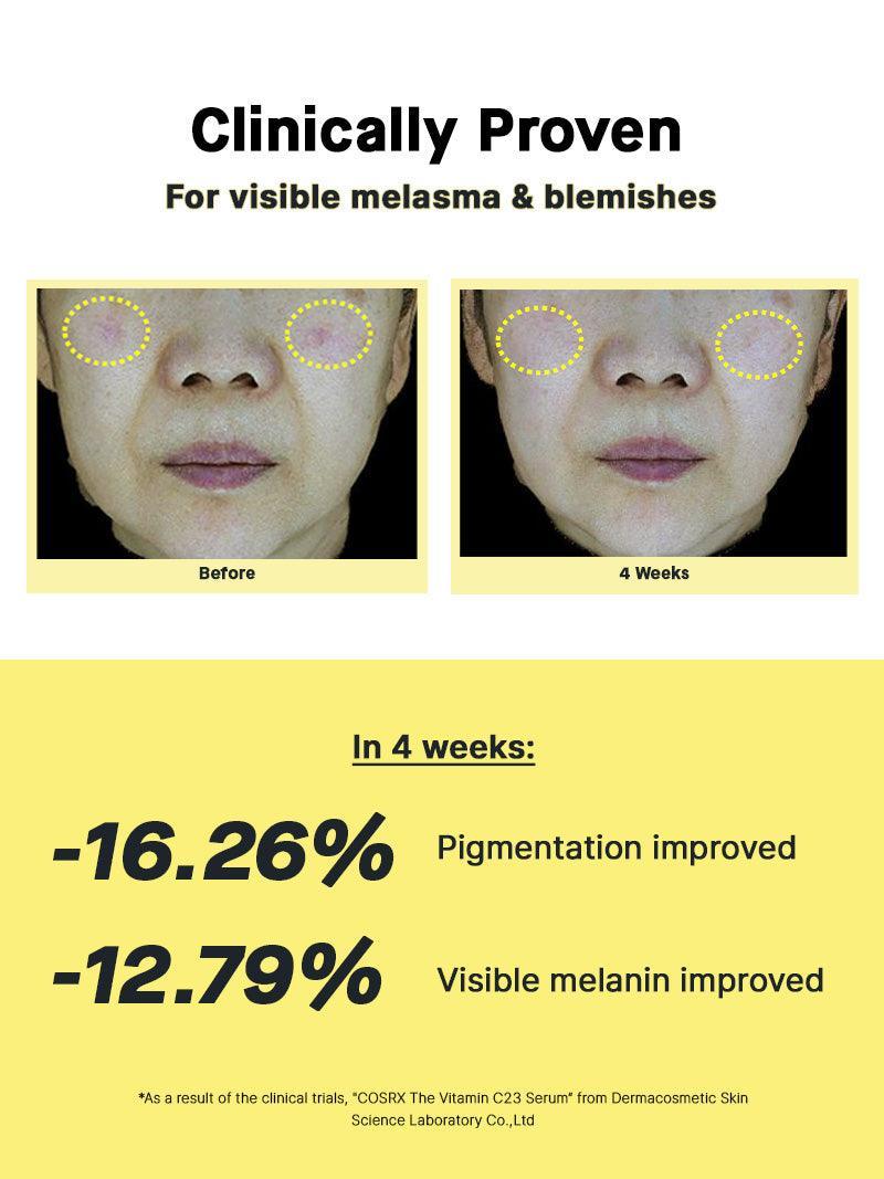 COSRX Vitamin C 23% Serum with Vitamin E & Hyaluronic Acid is a powerful brightening serum formulated with 23% pure Vitamin C to help fade dark spots, hyperpigmentation, and uneven skin tone. This lightweight serum helps to improve skin radiance and texture while providing antioxidant protection against environmental damage. It promotes a brighter, more even complexion, and helps to stimulate collagen production for firmer, youthful-looking skin. Ideal for those looking to brighten and refresh their skin, this serum is perfect for daily use and leaves the skin feeling smooth, energized, and glowing.