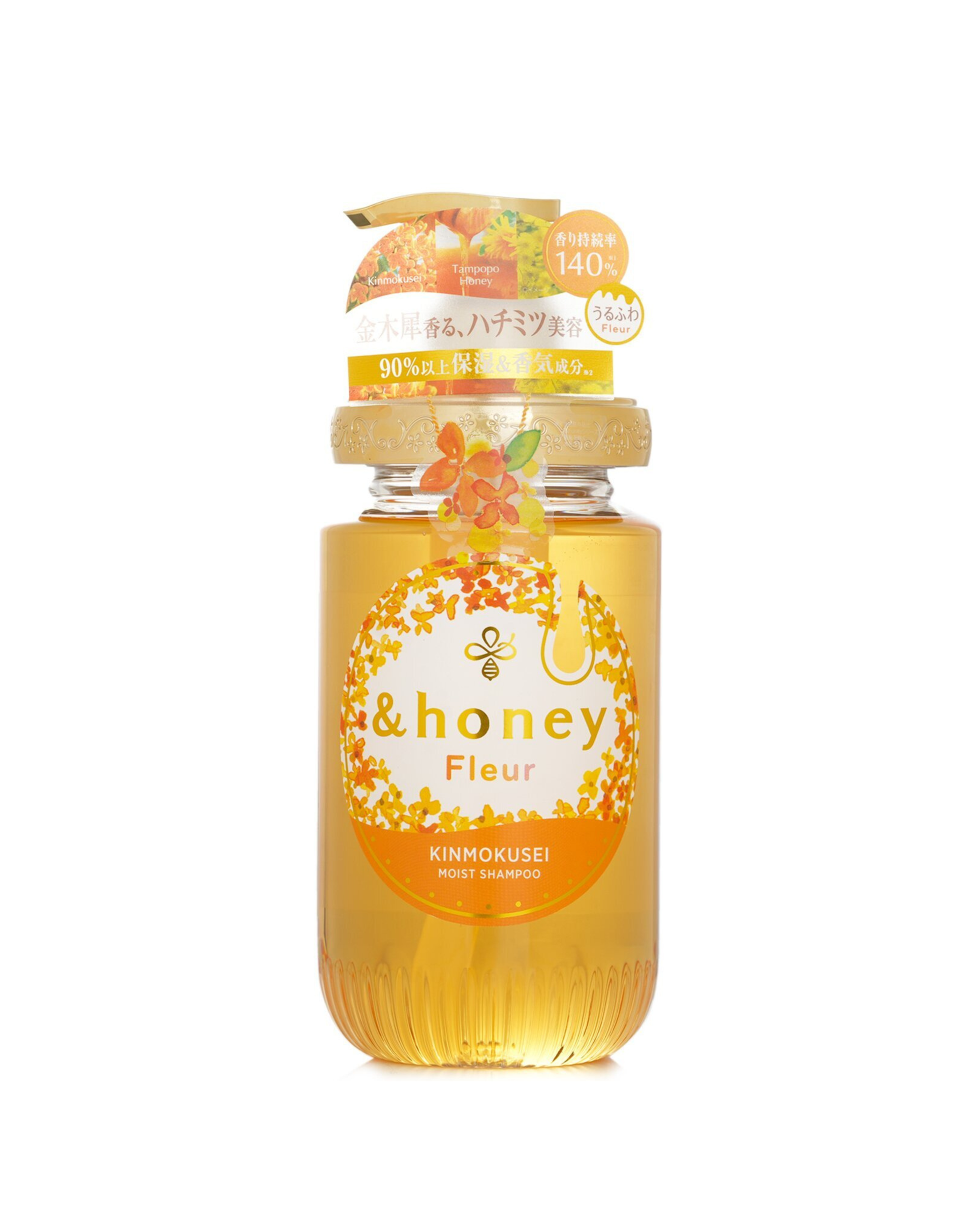 &honey Fleur Kinmokusei Moist Shampoo is a gentle, hydrating shampoo designed to cleanse and nourish dry, brittle hair. Infused with the soothing fragrance of kinmokusei (sweet osmanthus) and the moisturizing benefits of honey, this shampoo provides deep hydration while leaving your hair feeling refreshed and soft. Its nourishing formula helps to restore moisture, improve hair texture, and enhance shine, while protecting against frizz and damage. Ideal for dry or over-processed hair, this shampoo revitalizes and strengthens each strand, giving you silky, manageable hair with a pleasant floral fragrance. Perfect for daily use to maintain smooth, healthy-looking hair.
