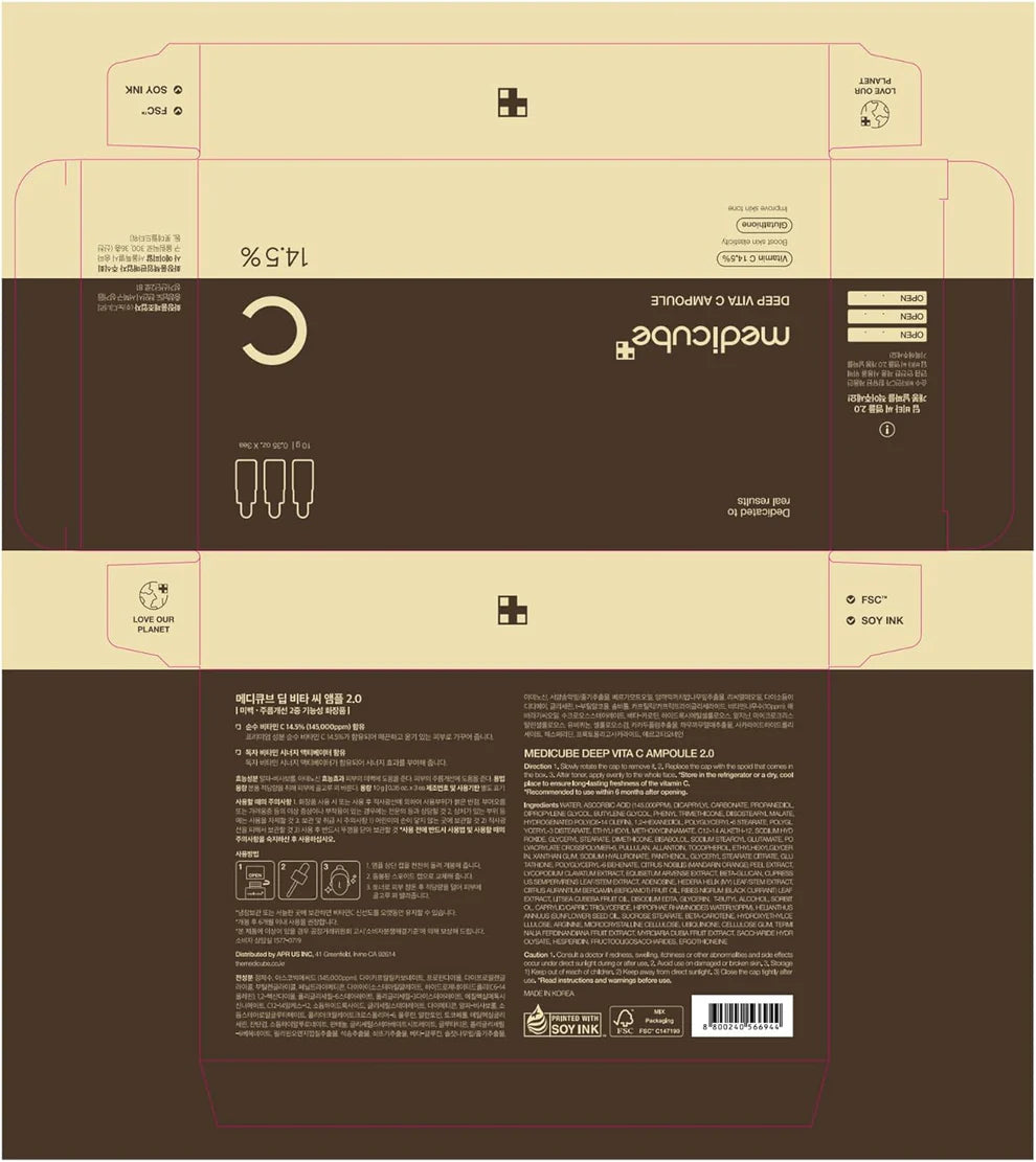 Medicube Deep Vita C Ampoule is a water-based facial serum with 14.5% vitamin C and Alpha-bisabolol to reduce hyperpigmentation, even out skin tone, and enhance skin radiance.