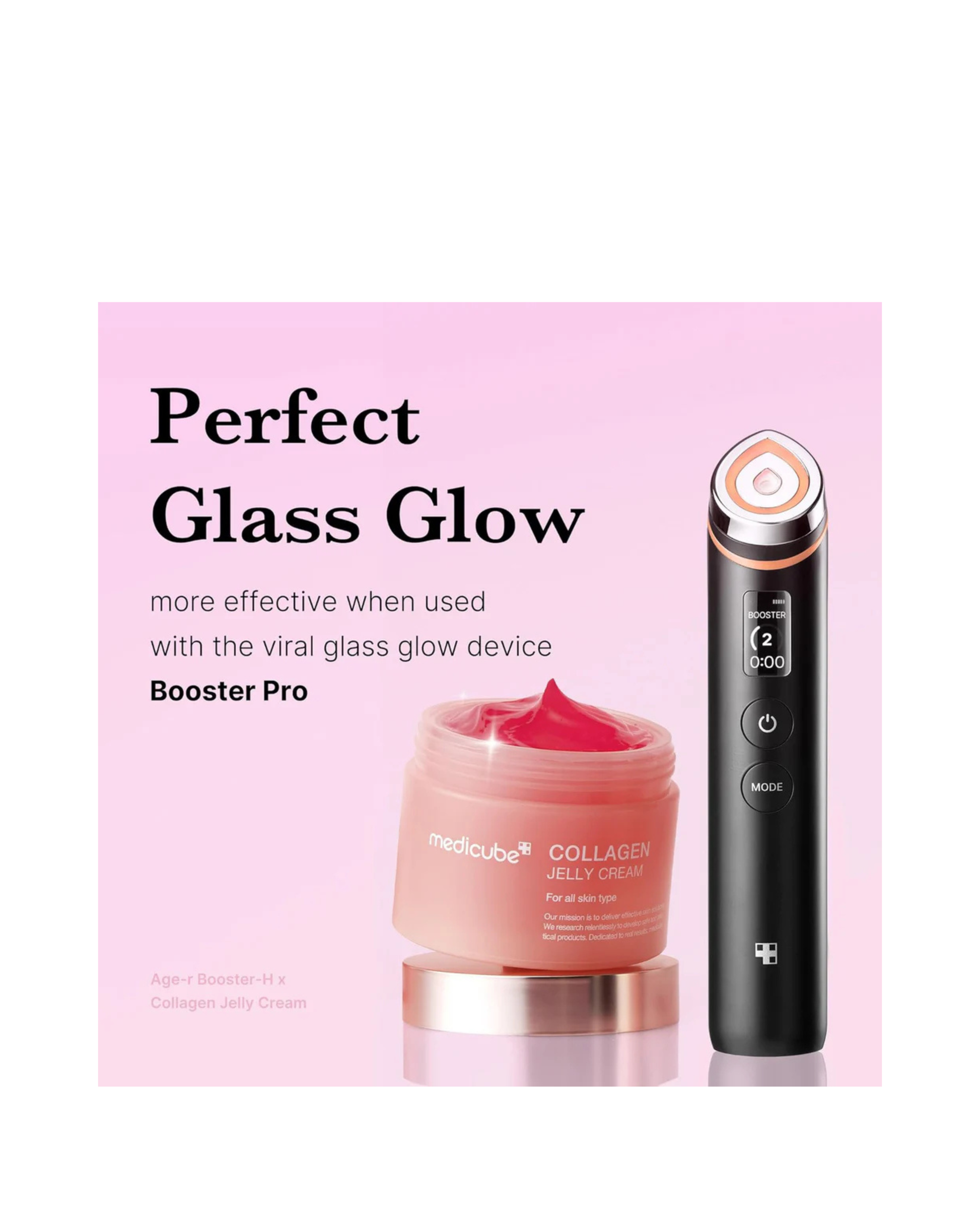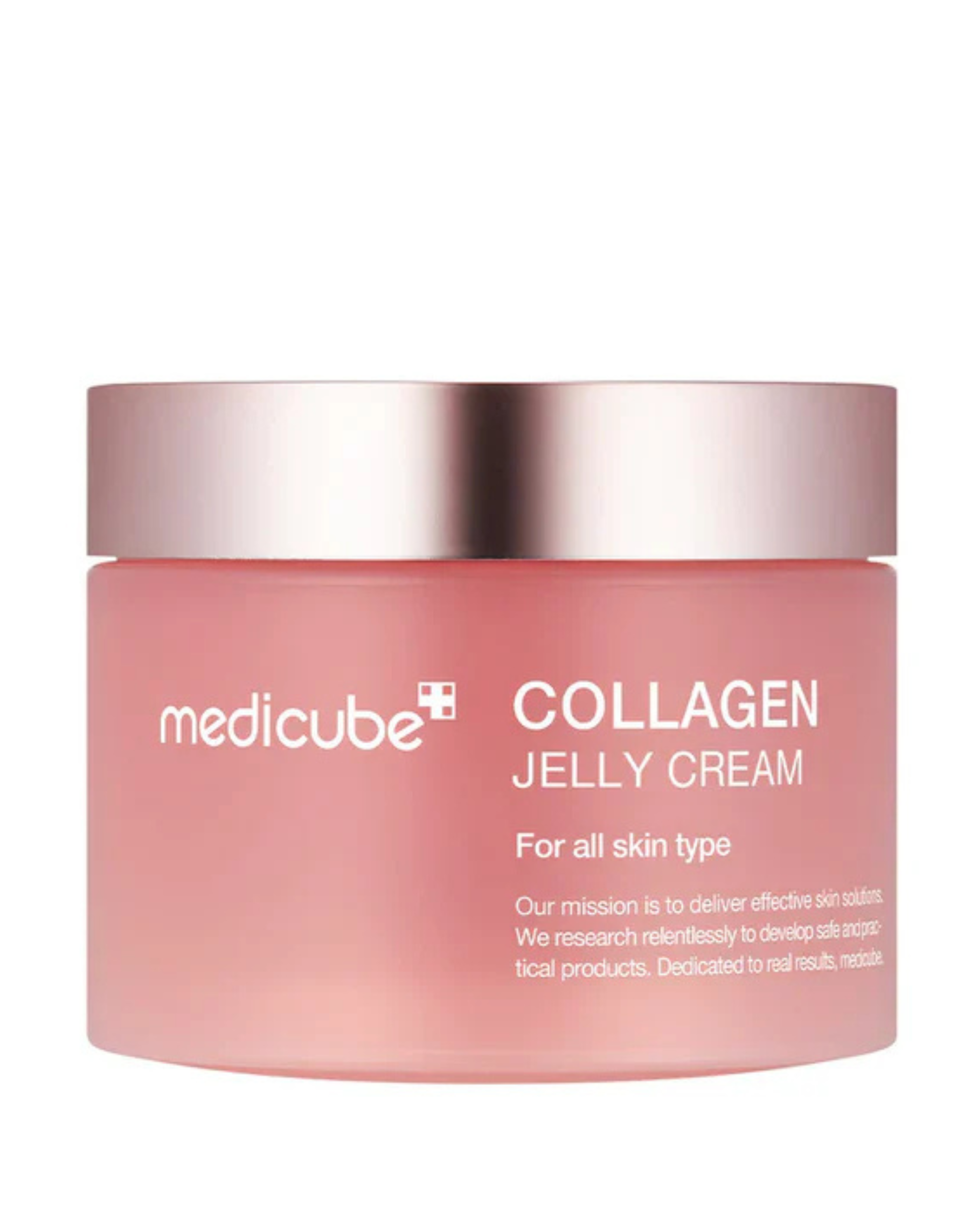 The Medicube Collagen Jelly Cream is a lightweight, transparent gel moisturizer designed to enhance skin elasticity and promote a youthful appearance. Formulated with freeze-dried hydrolyzed collagen, niacinamide, squalane, and hydrolyzed elastin, this cream deeply nourishes the skin, improving firmness and reducing the appearance of fine lines. Its unique jelly texture absorbs quickly, providing intense hydration without a greasy residue, leaving the skin with a luminous, 'Korean Glass Glow' effect.