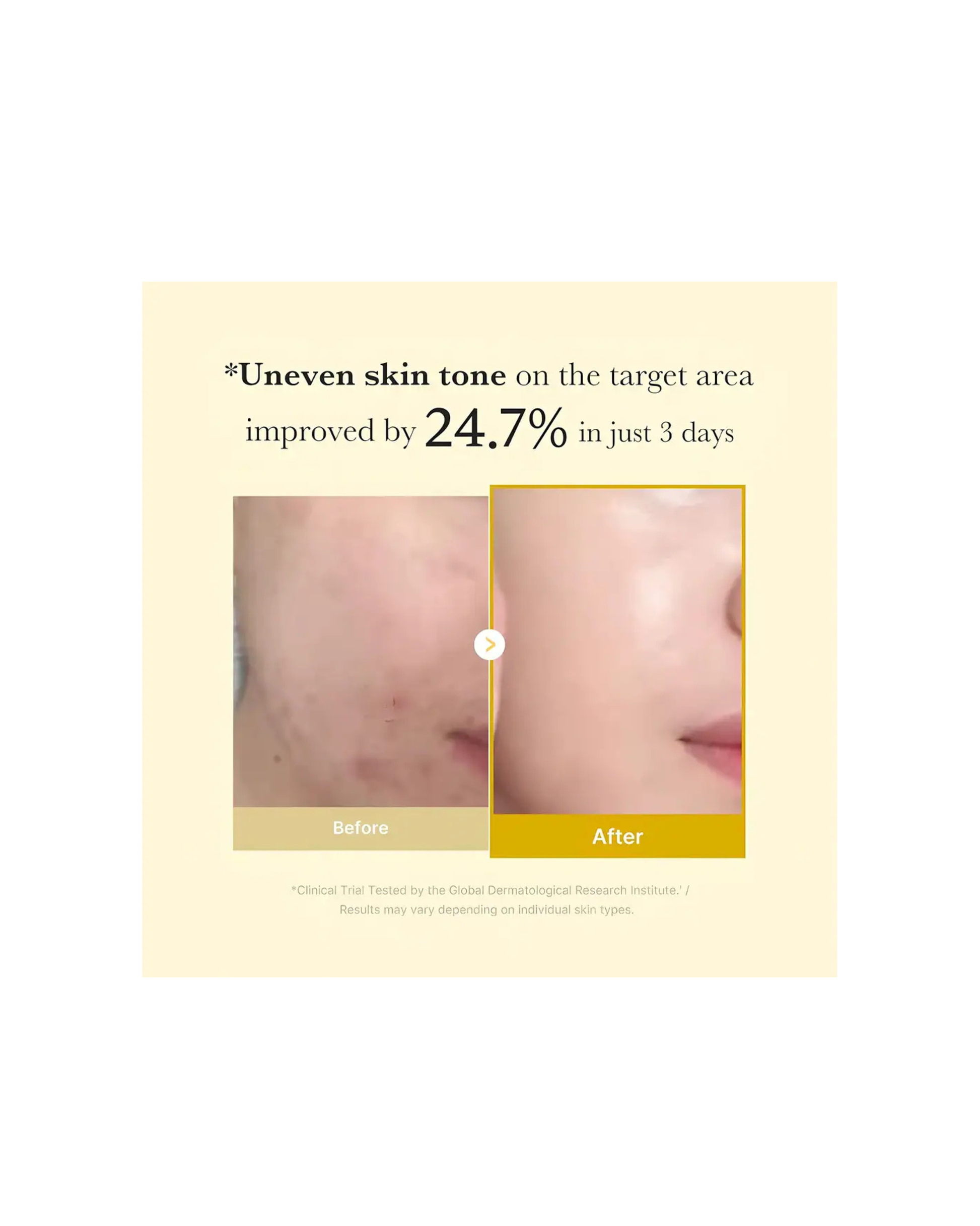 - Kojic Acid fades the uneven patches, Turmeric soothes irritation, Niacinamide and Vitamin E refine texture, enhance skin tone, and support the natural moisture barrier.