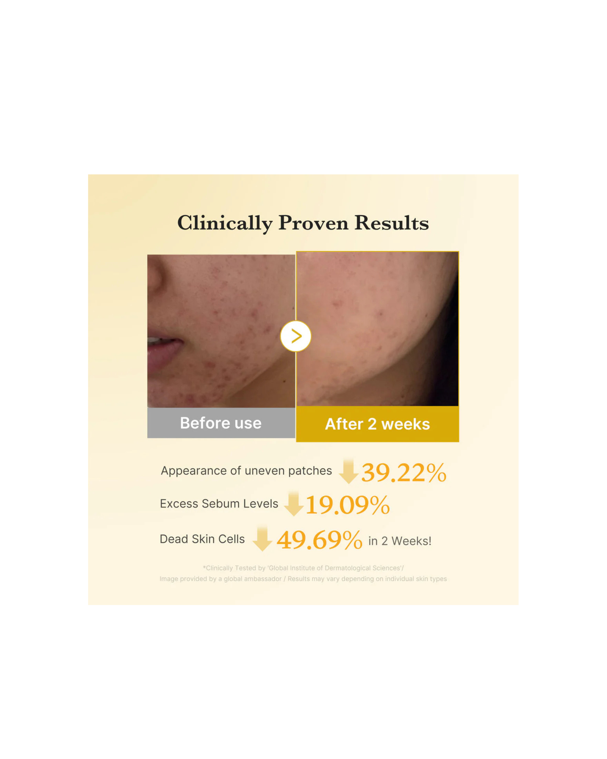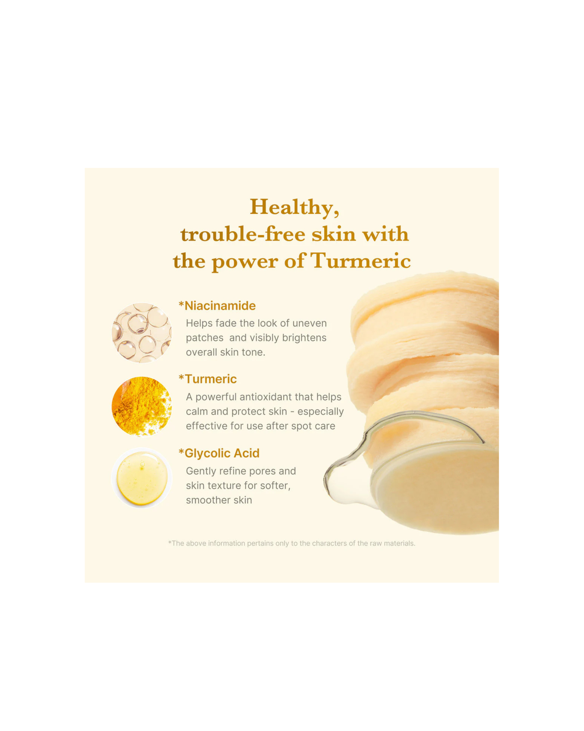 Powered by powerful ingredient : Kojic Acid and Turmeric, ideal for acne scar and dark spot care and helps visibly even out skin tone and texture.