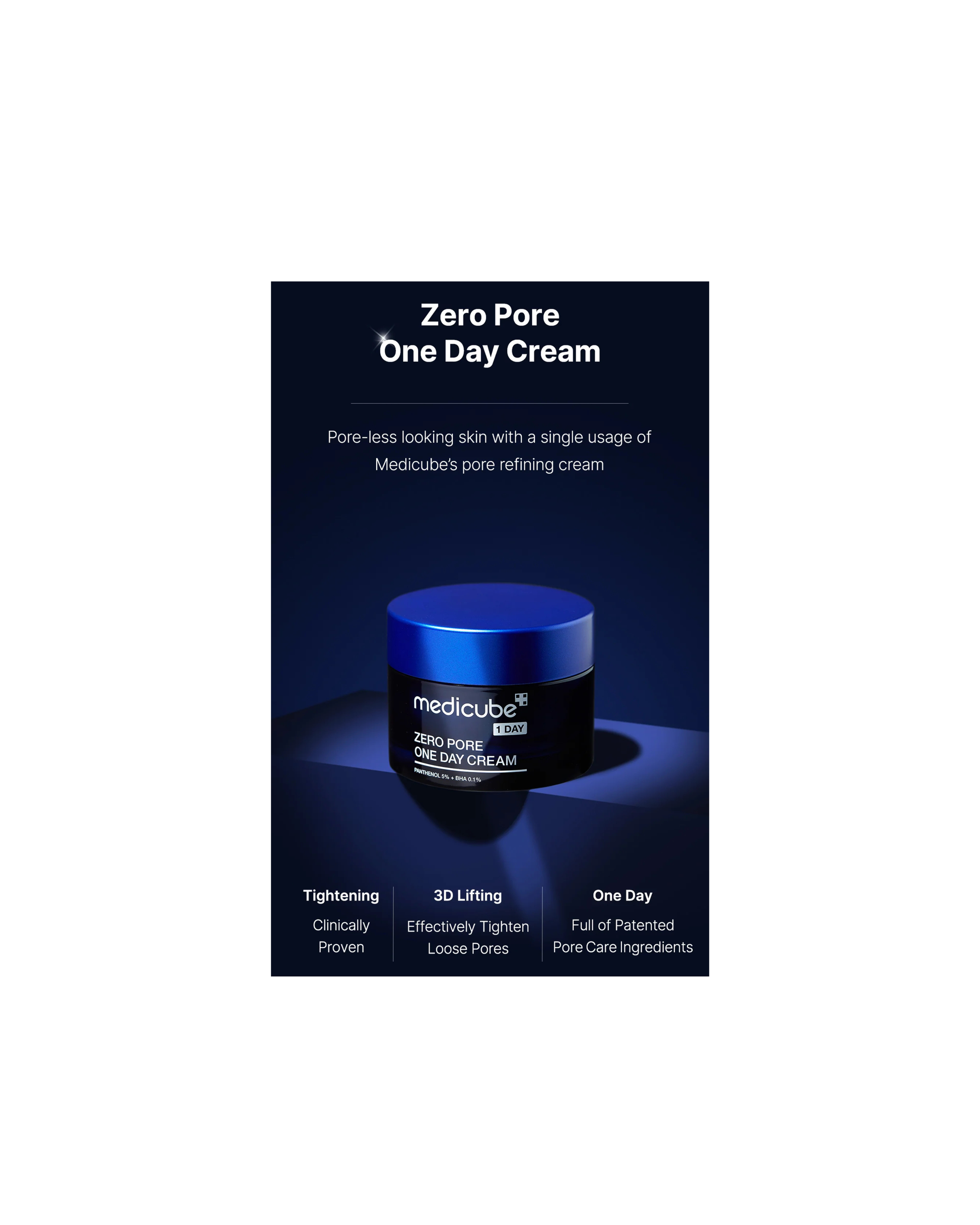 The Medicube Zero Pore One Day Cream is a clinically proven pore-refining moisturizer that delivers hydration while improving pore elasticity. With its non-sticky, refreshing texture, it works to visibly reduce pore size, balance sebum, and strengthen the skin barrier for smooth, healthy-looking skin.